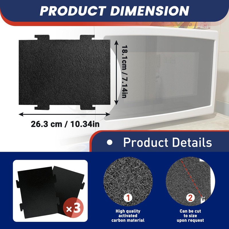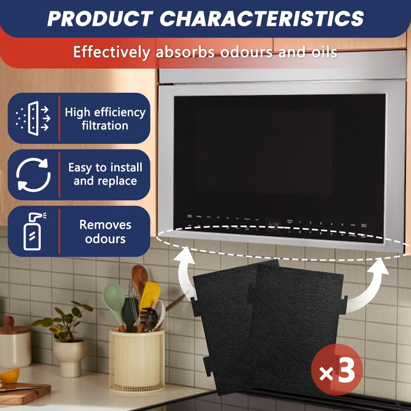 - Easy installation: With no measuring cuts required and pre-cut filters designed to fit precisely into the filter compartment of an oversized microwave oven, our microwave oven ventilation filters install in seconds.