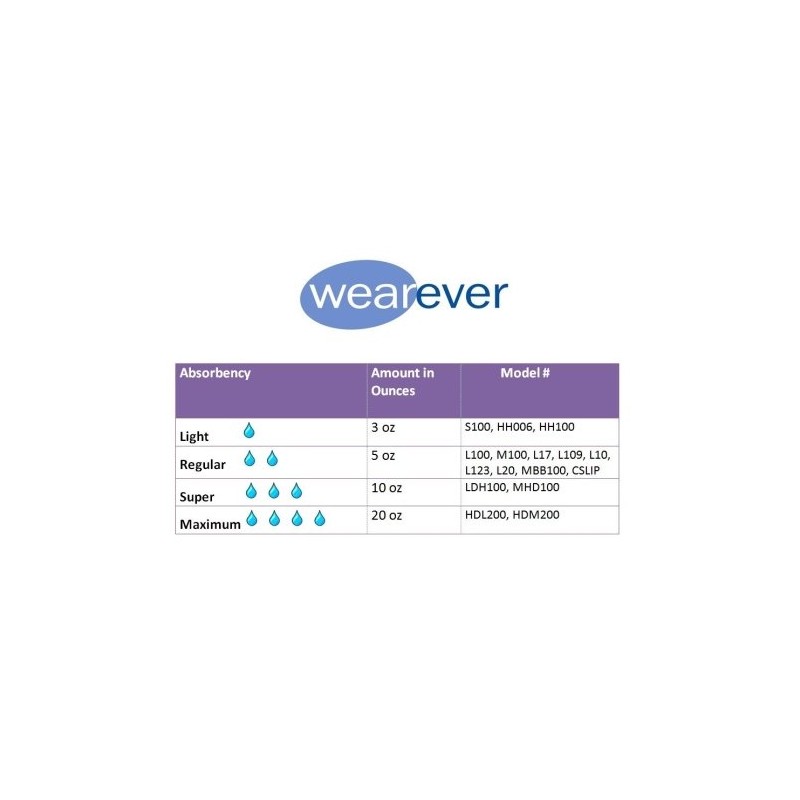 - Maximum absorbency - Holds up to 20 ounces of liquid. Suitable for moderate to heavy incontinence. Not for severe or total incontinence.