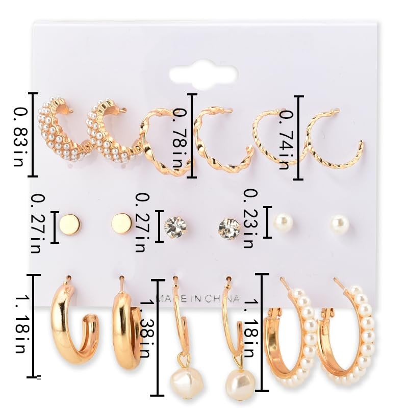- Various Styles: This good hoop earring sets have 6 pairs, have chunky gold hoop earrings, gold twisted hoop earrings, pearl drop earrings, tiny twist earrings, suitable for all occasions and clothing, making you more beautiful