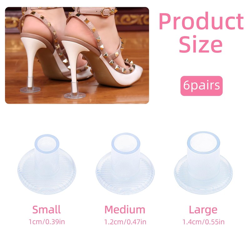 6 Pairs Clear High Heel Protectors, 3 Size High Heel Stoppers Heel Covers for Walking on Grass and Uneven Floor, High Heel Caps for Women Shoes Stop Heel Sinking(Small/Middle/Large)