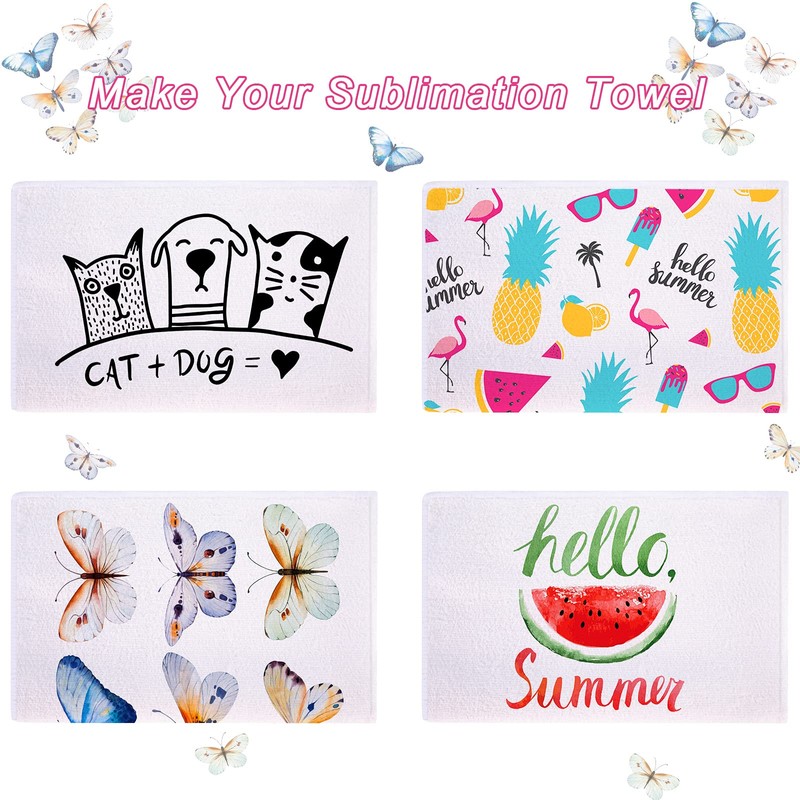 - Adecuado para sublimación: nuestras toallas absorbentes suaves son adecuadas para sublimación, cuando la temperatura está entre 170 y 190 grados Celsius, absorben bien el tinte y no se rompen durante la transferencia de calor, por lo que puedes imprimir fácilmente cualquier patrón que quieras para hacer tu toalla única y atractiva