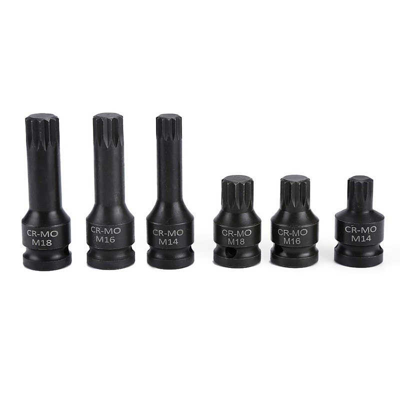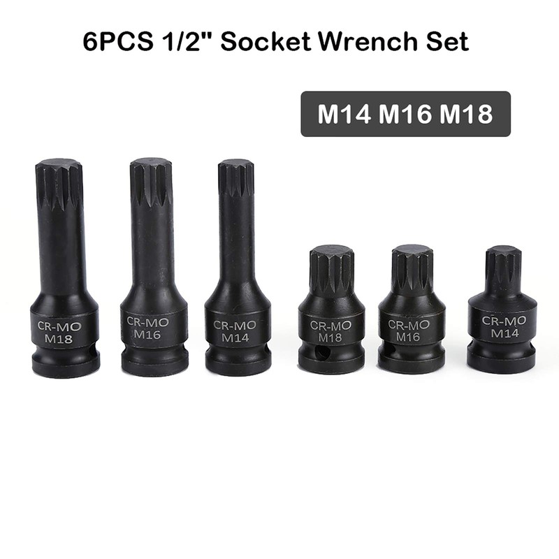 6pcs Spline Bit Socket Set 1/2 " multi-tooth: