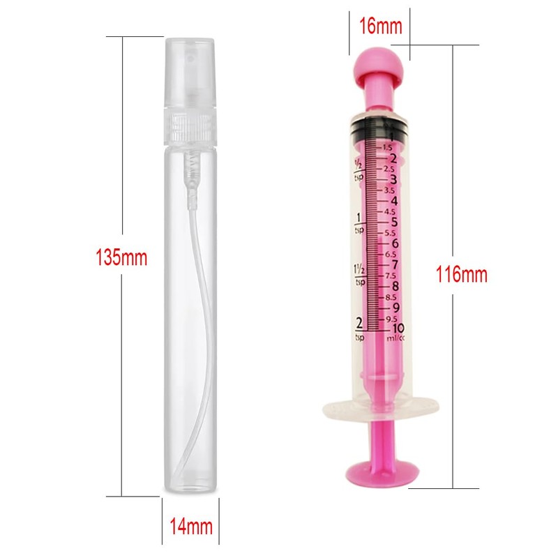 - SPRAY BOTTLES SET - 6 pcs 10ml mini spray bottles,This spray bottles Non-screwing design, more convenient, with 10 ml Syringes. This spray bottles is easy to fill using a Syringes, and after filling the liquid, press the top down firmly to fasten it.Gift a single exquisite travel bag