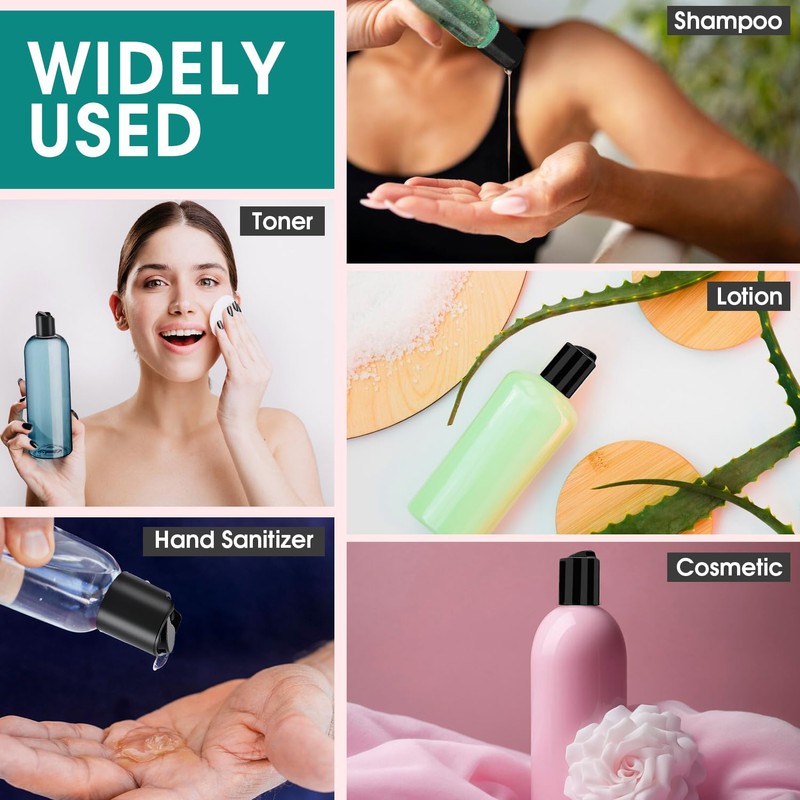- Package includes- You will receive 6 pieces empty plastic shampoo lotion bottles with clear body and black disc cap. The capacity is about 16oz/500ml (2.5*7.7 inch/6.3*19.5 cm), which can allow you to store various liquid toiletries. Our refillable containers with clear appearance allow users to distinguish the liquid inside easily. You can also write the name directly on the bottle or label it to distinguish similar items.
