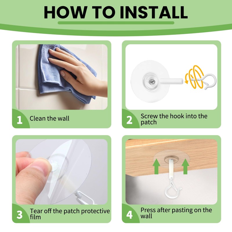 - Instant Tool-Free Setup: Simply clean, peel and stick, No hole hooks achieve instant grip. Ideal for renters with command hook reliability—wait 24hrs before hanging