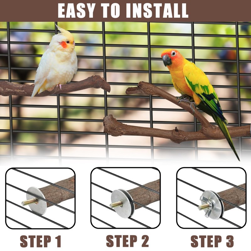 - EASY TO INSTALL - Each bird perch is equipped with a metal wing nut and built-in bolts. You just need to clamp the grid of the birdcage with two washers and fix it with nut and bolts. The diameter of the washer on the bird perches is about 1.18 inches, and the spacing between of the birdcages grids needs to be less than 1 inch to install