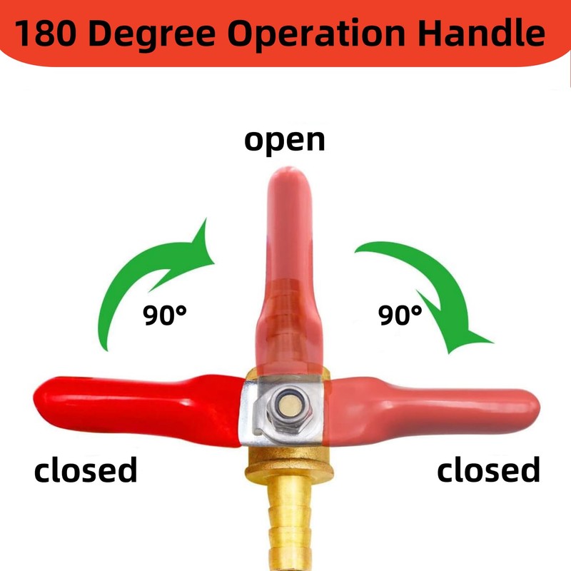 The 180-degree rotatable handle can easily open and close the valve or control the flow of the pipeline. And the handle is coated with red covered plastic, which feels comfortable. Suitable for use in air, water, oil, nature, manufactured, mixed liquefied petroleum or propane. Product Name: 3/8" Ball Valve Materials: Forged Brass Outer Diameter: 10mm/ 0.375 Inch Fit Pipe Size: 3/8 Inch Temperatures range from: -2 to 88 Connections: Hose ID x Hose ID Barb. Package Including: 6Pcs Ball Valve. Note: Please note, for your health and safety, this brass fitting is not suit for drinking water.