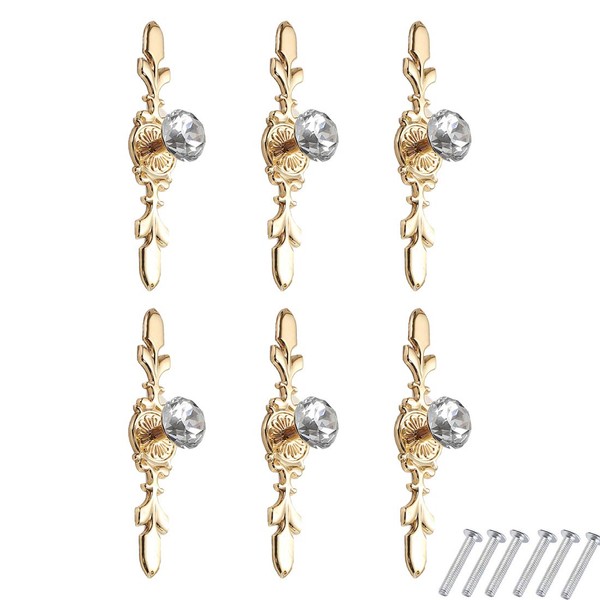 6-PCS Crystal Drawer Knobs Modern Glass Cabinet Knobs Diamond Drawer Handles Cupboard Pull Handles with Screws for Home for Kitchen for Office