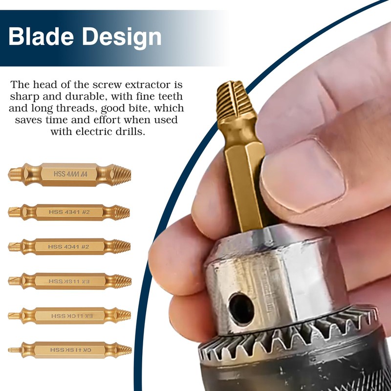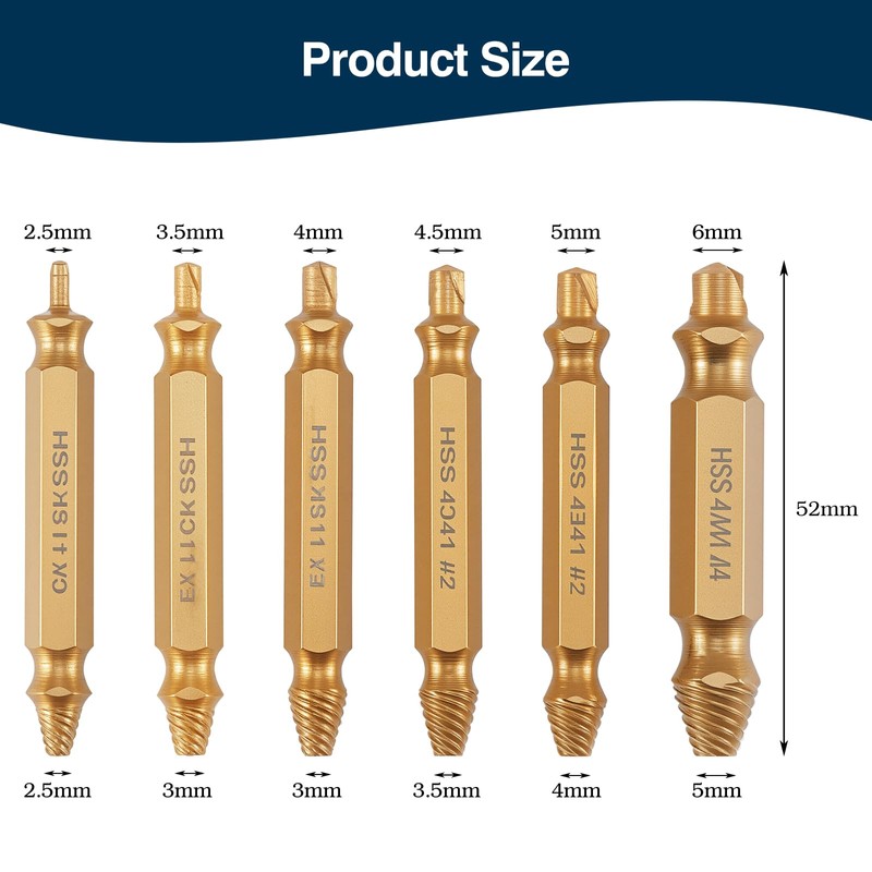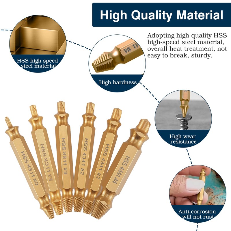 - Quality material: Damaged screw remover is made of high-quality HSS high-speed steel, general heat treatment, hardness, high wear resistance, not easy to break, corrosion protection will not rust, durable.