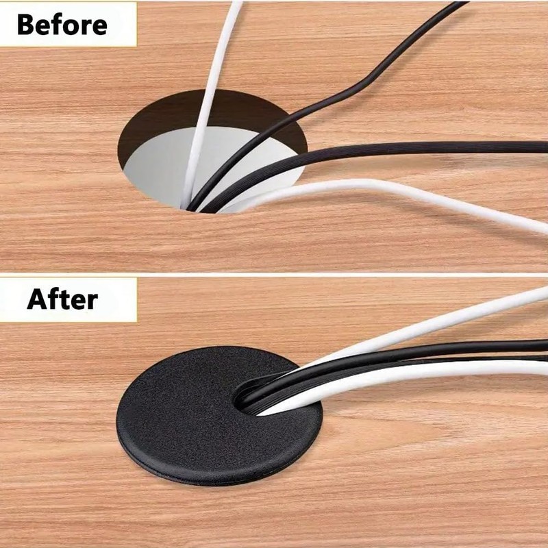 - 【Easy to Use】Just put the body of the ring on your desk, table or workstation, drill a hole with the hole saw we provide you, put the ring in the hole, then pass all the cables, wires through the hole and adjust the cover to hide all the wires in an orderly manner.