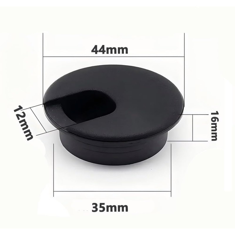 - 【What You Get】You will get 6 pieces of black desk cable cline grommets with hole saw. The overall size of the grommet is 1.7 x 0.63 inches (diameter x height), and the mounting hole diameter is 35 mm/1-3/8 inches.