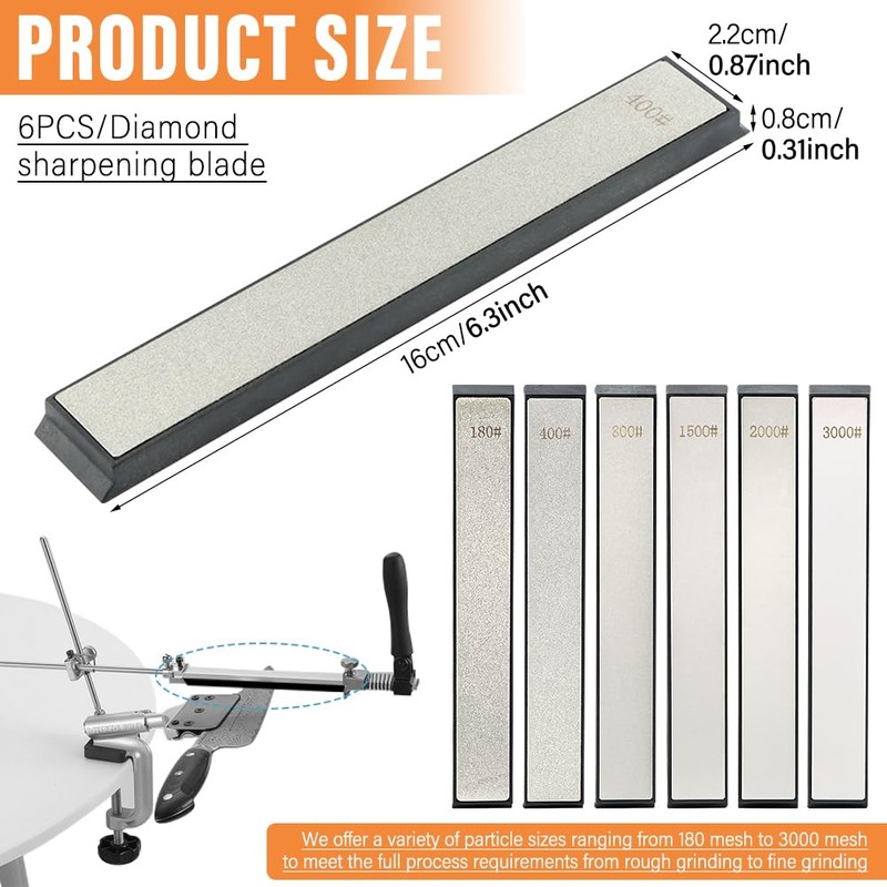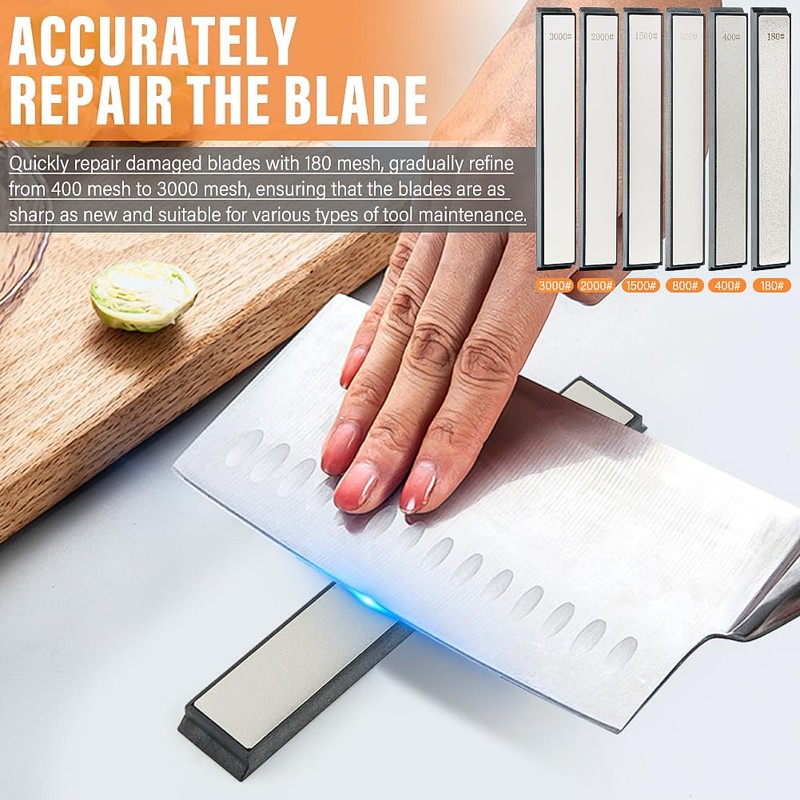 6 PCS Diamond Knife Sharpening Stones, Knife Sharpener Fixed-Angle Kit, Diamond Whetstone Oil Stone: 180/400/800/1500/1500/2000/3000 Grit