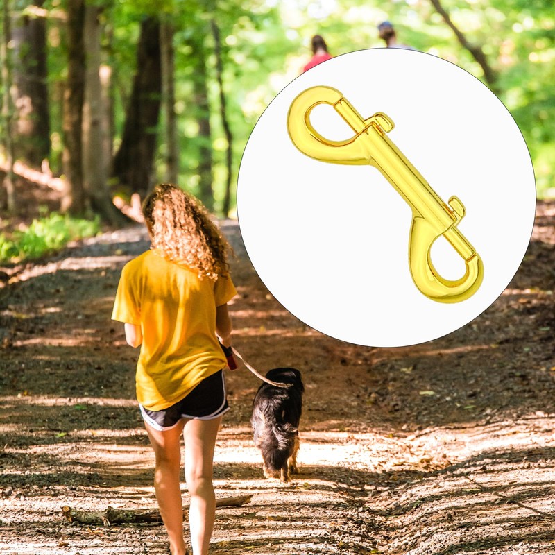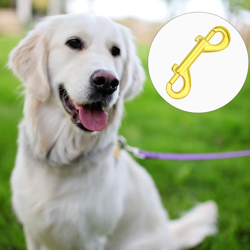 6 Pcs Double Ended Bolt Snap Hook, Zinc Alloy Double Dog Lead Metal Clips Lightweight Dog Lead Hook for Dog Leash Key Chain (Gold)