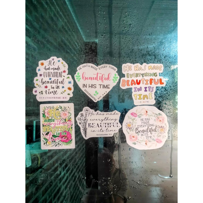 (6 PCS) Ecclesiastes 3 11 He Has Made Everything Beautiful in Its Time Inspirational Christian, Faith, Bible Verse Sticker Waterproof Vinyl Decal Size 3"
