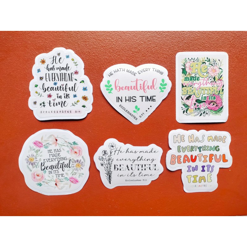- DESIGN VARIETY: Set of 6 unique sticker designs featuring the inspirational Bible verse from Ecclesiastes 3:11 with different artistic styles and floral elements