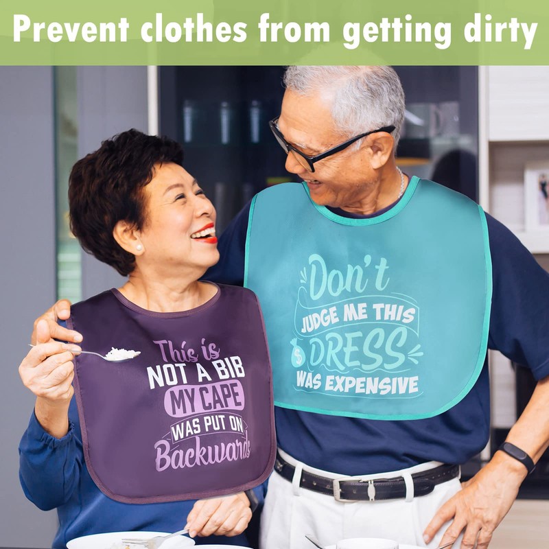 - Thoughtful Gift: these adult reusable eating bibs are ideal as practical gifts for your parents, husband, wife, grandfathers, grandmothers, friends, teachers, etc., they will be happy to receive these funny and thoughtful accessories