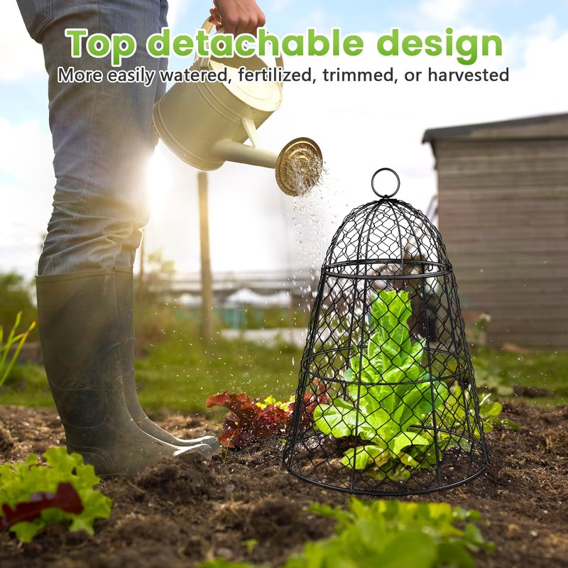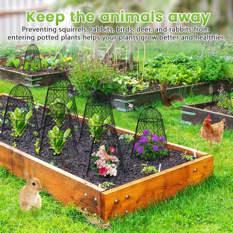 6 Pcs Garden Cloches for Plants, Metal Extra Large Chicken Wire Cloche Plant Covers, Garden Netting Plant Protectors from Animals to Keep Squirrel, Rabbit, Chicken and Bird Out 17" H x 13" D Black