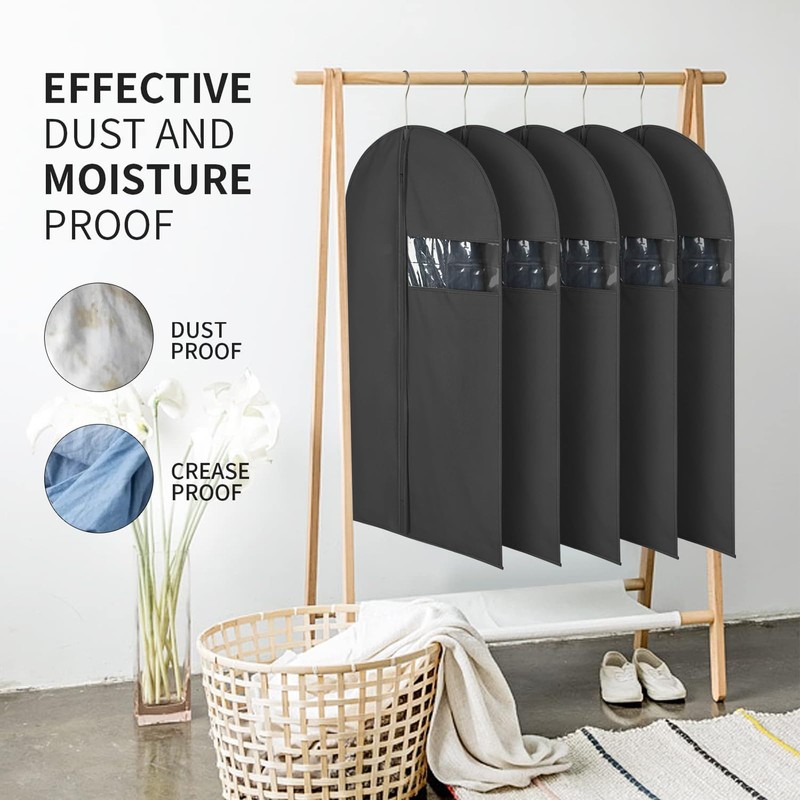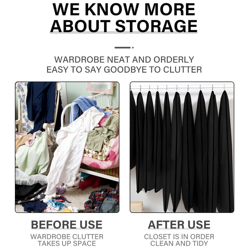 - 【DUST-FREE PROTECTION】Effectively shield your garments from dust, insects, and moths with these clothes covers. Each garment bag keeps your dress shirts in perfect condition. The easy access zipper allows for hassle free storage. Store multiple articles of clothing in each bag to help maximize your storage space.