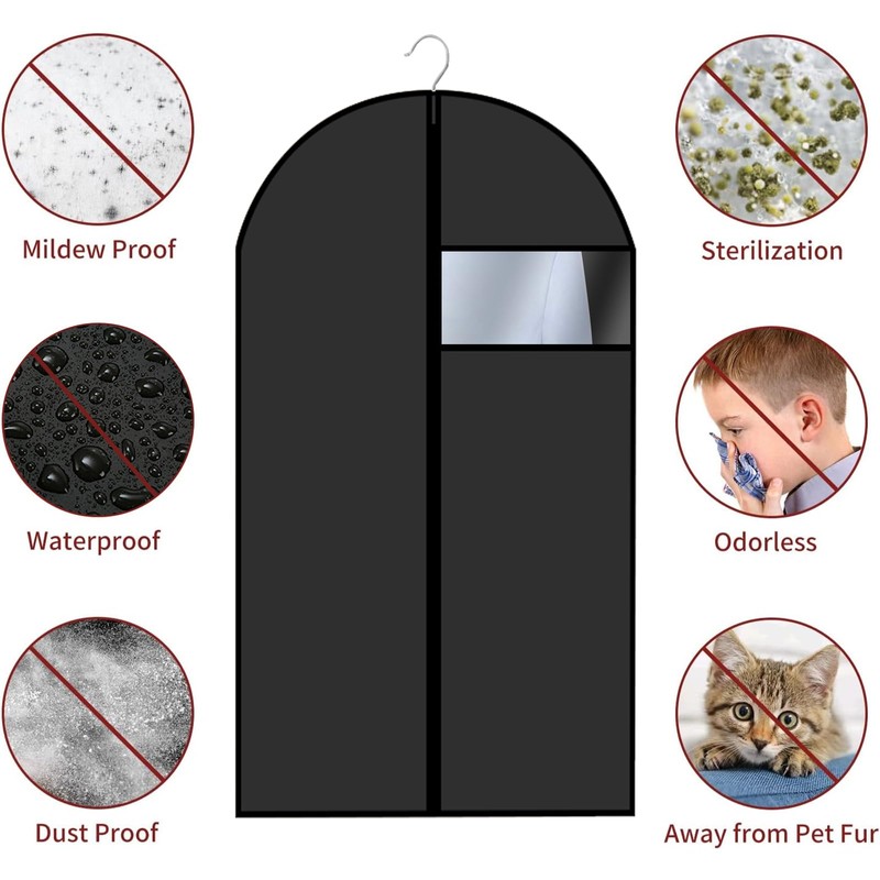 - 【HIGH-QUALITY MATERIAL】These suit bags are constructed from thick PEVA material, which is not easy to tear, Washable, dust-proof. It is snag-free and features a full-length sturdy zipper. The dust and water-resistant design protects your clothing from mildew and pet hair, keeping them fresh and wrinkle-free.