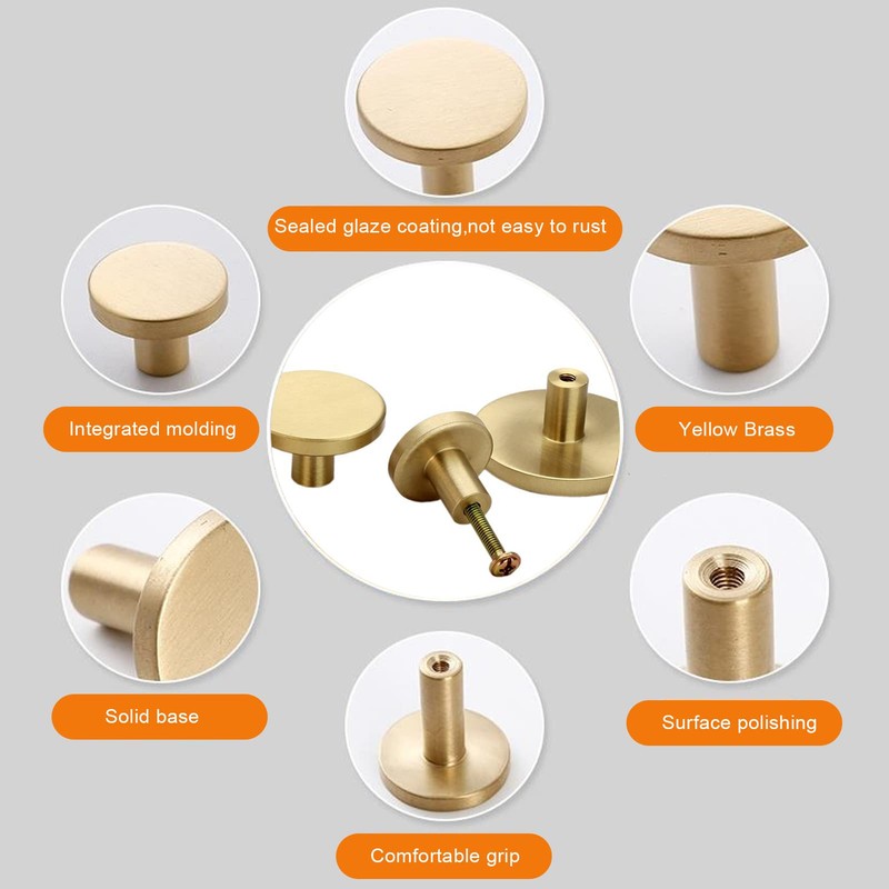 - Wide Range Of Applications:These brushed brass knobs can be used in kitchen cabinets, bathroom cabinets, cabinets, doors, desk drawers and more. The elegant look of the golden color suits most home decor styles.