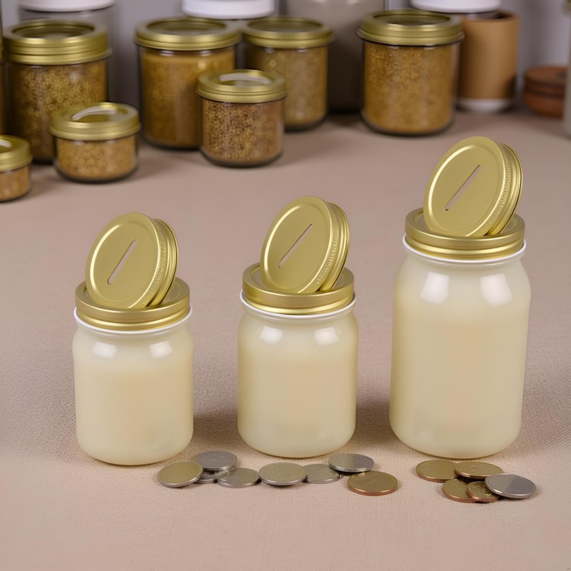 - VERSATILE FIT: 2.7-inch diameter lids designed to fit regular mouth mason jars and savings containers, perfect for DIY piggy bank projects