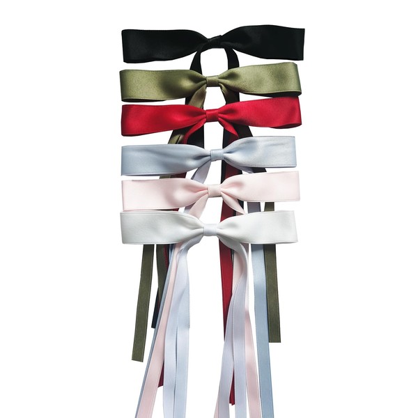 6 Pcs Hair Bows For Women, Silky Satin Ribbon Hair Clips Bowknot With Long Tail,Bowknot Hair Clips Hair Barrettes Hair Accessories For Women Girls (Black, White, Pink, Burgundy, Green, Blue)