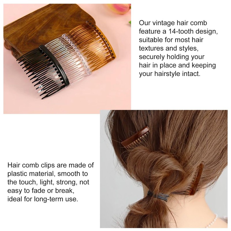 - Complete Set of 6 Combs: This set includes 6 durable and lightweight hair side combs, each with 14 teeth, offering a variety of styling options for all hair types and lengths.