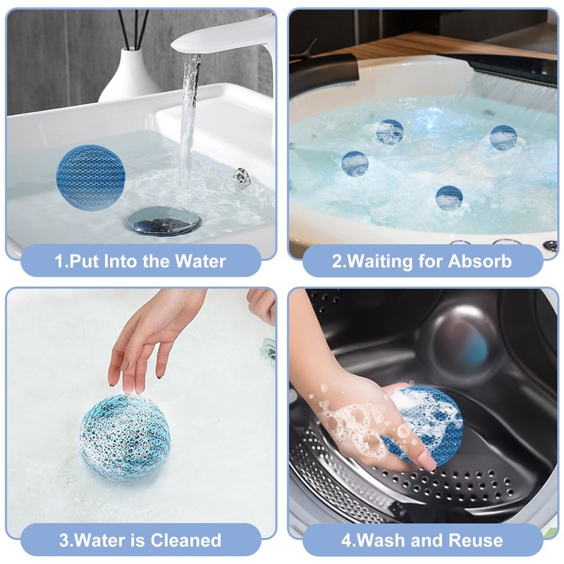 - 【improved sponge Materials】: Conventional absorbaball has large pores on the surface and are prone to yellowing. Our hot tub cleaner balls are made of an improved sponge that is soft and safe, with a specially treated velvety surface that ensures a longer life, and each ball can be reused for up to 3 months