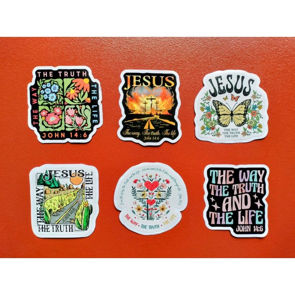 • DESIGN VARIETY: Set of 6 unique Christian stickers featuring different artistic interpretations of John 14:6 with floral, nature, and symbolic designs