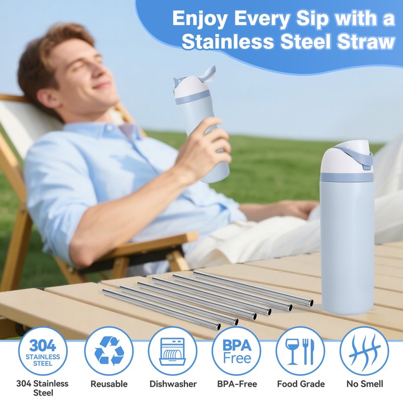 - Replacement Set : Includes 6 reusable stainless steel straws (21cm / 8.3 in) and 2 cleaning brushes—everything you need for convenient, hygienic, and sustainable sipping. Keep this backup set on hand so you can always enjoy your drink without interruption.
