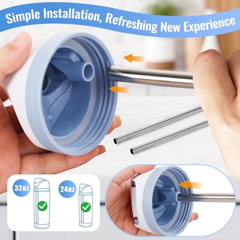 - Easy to Install & Clean: Designed for quick installation and removal, these straws simplify your daily routine. The included cleaning brushes make it easy to keep them fresh and hygienic at all times. Installation steps are shown in the included images—remember to clean your water bottle and straws regularly.