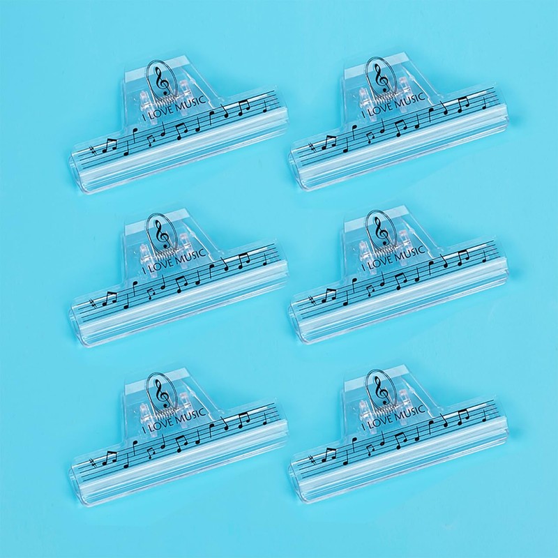 6 Pcs Plastics Music Book Clip,Music Sheet Clip Music Paper Clip,Music Page Holder,for Piano Guitar Violin Playing Instruments and Reading Books-Music Note Pattern