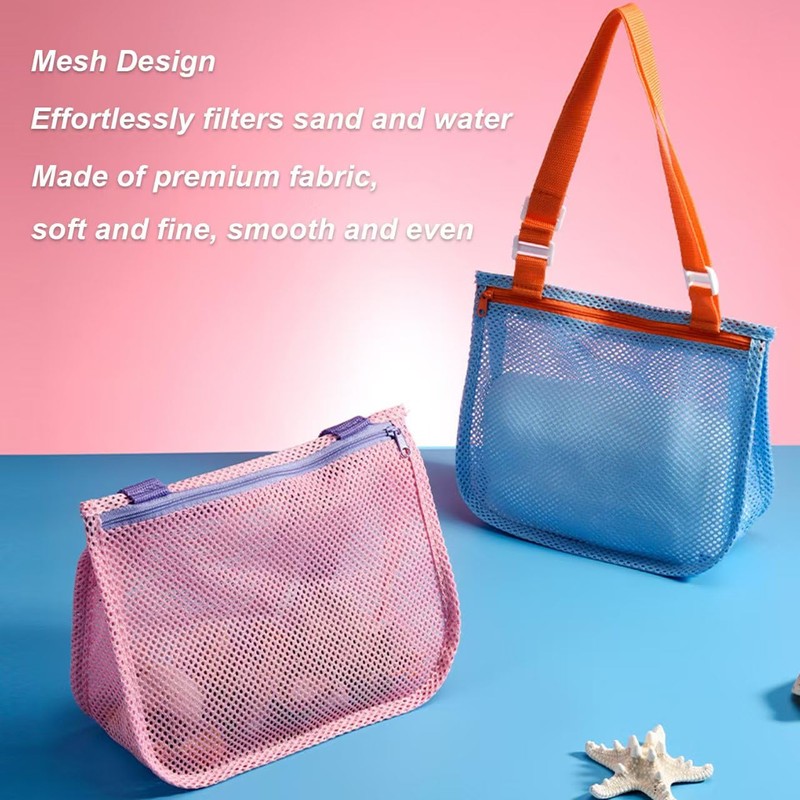 - MESH CONSTRUCTION: Durable mesh material allows sand and water to filter through while securely holding shells and beach findings