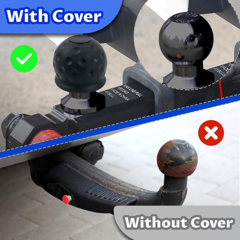 - 【Effective Protection】Our towing bar ball cap can effectively protect your trailer hitch ball from scratches, rust, dust and sand erosion, and prevent your clothes from accidentally getting grease, prolonging the service life of the trailer ball.