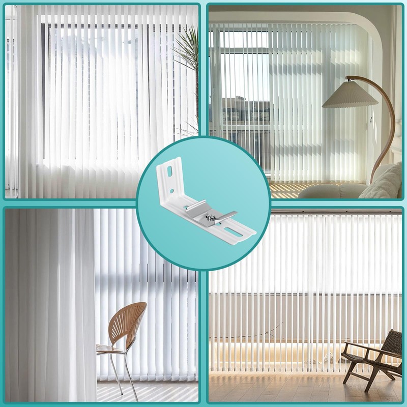 - Practical Design:The vertical blind mounting bracket of pure white color are elegant and slim, unassuming color and profile let them hide in the blinds, don’t affect the overall aesthetic of window blinds.