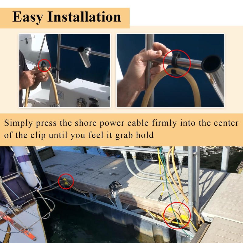 • Product Overview: 6 Pcs Yellow Shore Power Cable Clips & 6 Pcs Black "S" Style Dock Electrical Marine Holders, Includes 12 stainless steel screws