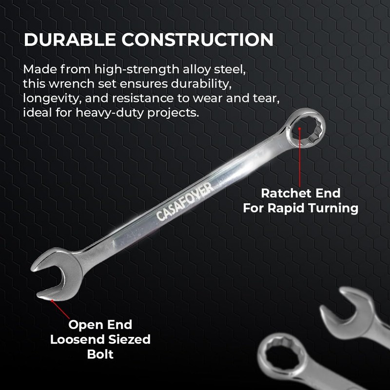 6-Piece Combination Spanner Set, Polished Finish, Superior Grip for Home Use and Professional Mechanics, Car Repair Tool Set