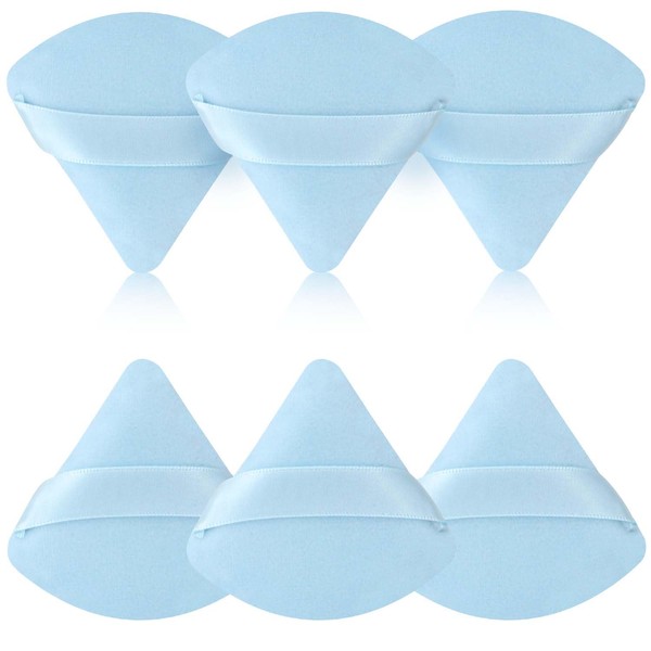 6-Piece Powder Puff Face Triangle Set - Triangle Powder Puff Soft Velour Makeup Sponges for Loose Powder and Body Powder - Beauty Makeup Tools (Blue)