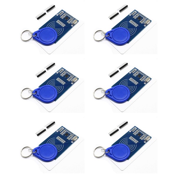 6-Piece RFID Kit: Mifare RC522 RF IC Card Sensor Module with S50 Blank Cards and Keychains, Compatible with Arduino and Raspberry Pi
