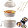 - 6 Piece Set: A ramen noodle bowl set includes: 1* wrist cover, 1* strainer basket, 1* large bowl with handle, 1* fork, 1* spoon, 1* chopsticks