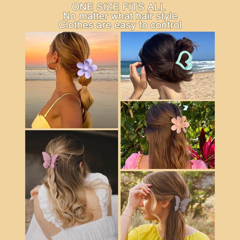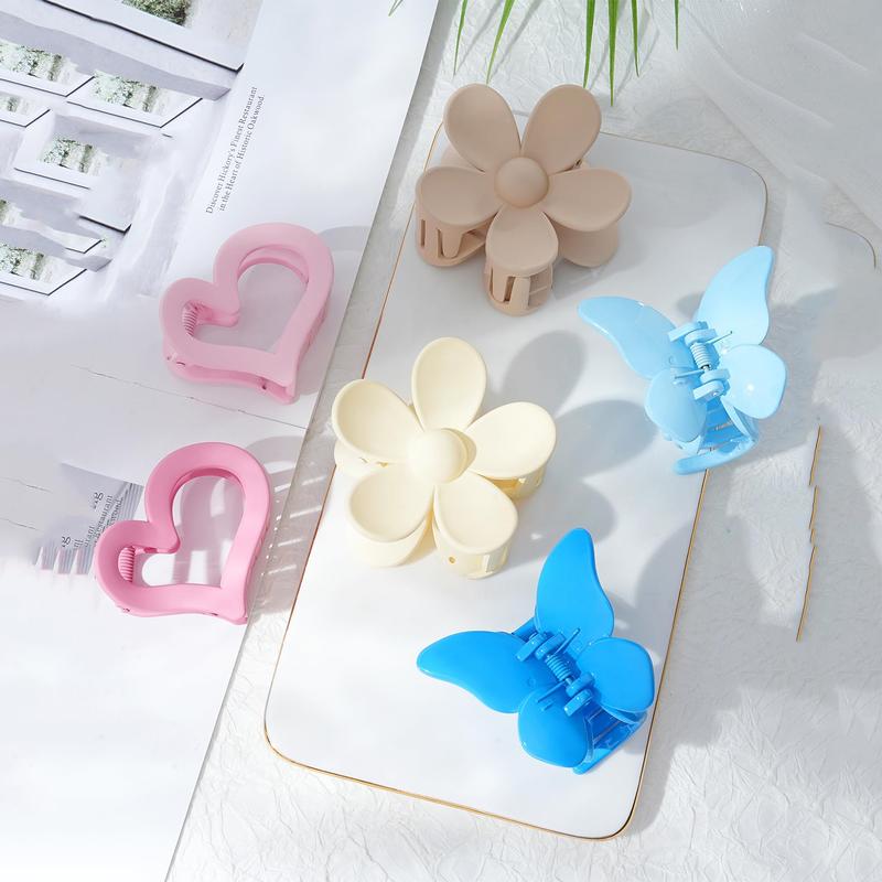 6-piece suit Matte cute Hair Clips Claw with Flower, Heart, and Butterfly Designs for Women and Girls - Colour: 6 Pack-multicolor B