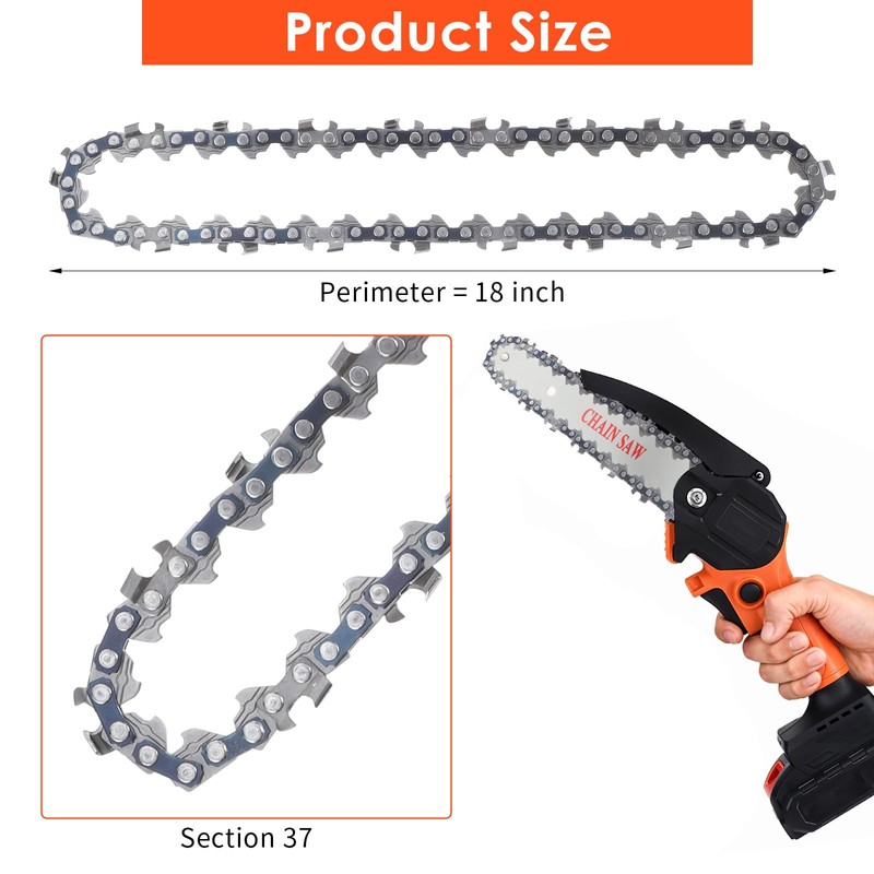 - 6 PIECES 6 INCH MINI CHAINSAWS CHAIN:37 Drive Links, 1/4 mini 6 inch chains suitable for all 6-inch mini chainsaws on the market. Fits for 6-Inch Mini Rechargeable Cordless Electric Chainsaw.Extra 2pcs 6-inch guide included