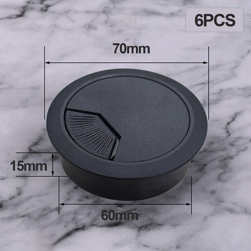 6 Pieces Desk Grommet, Desk Cable Hole, Cable Hole Cover, Desk Grommet 60mm, Round Cord Cable Hole Cover, for Management Office Computer Desk Wires (Black)