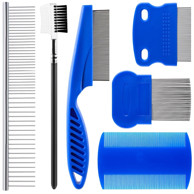 - Proper Size: the blue handle tooth comb measures approx 5.5*1.2 in, long-needle comb 2.2*3.1 in, short-needle comb 2.4*2.2 in, double sides lice comb 3.5*2 in, stainless steel eye tear stain remover combs 6.3*1.2 in, 2-in-1 comb 6.5*1 in, suitable size for most small sized cats and dogs