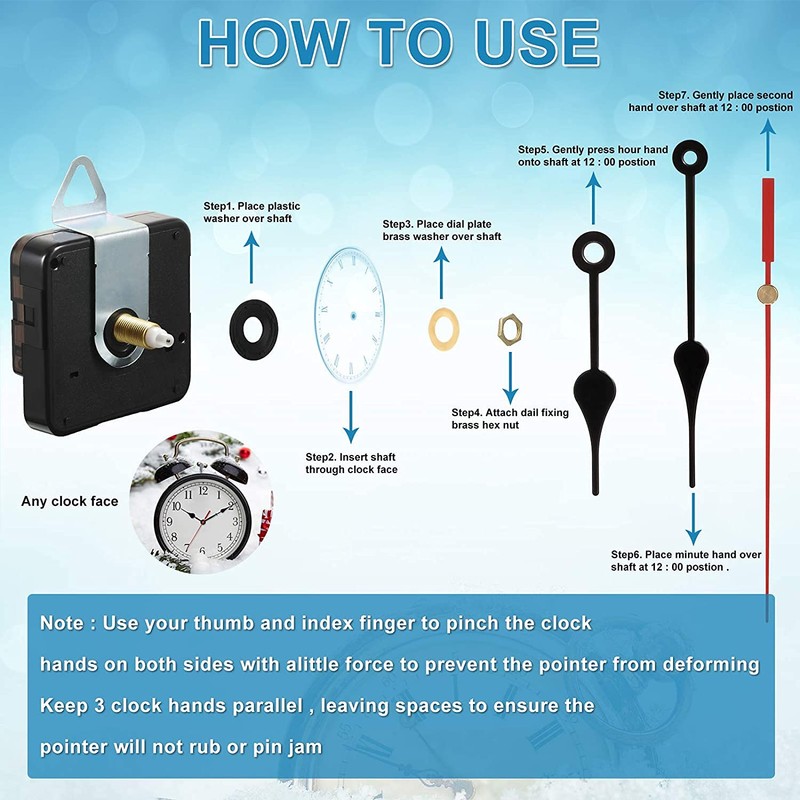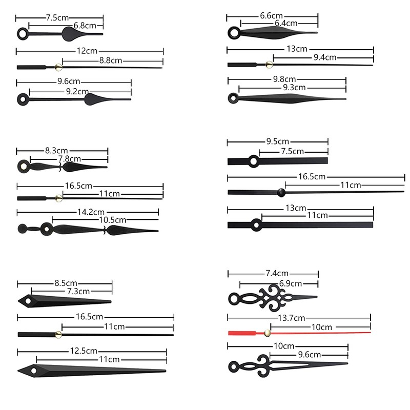 - 6 different styles and lengths of hands: This set contains 6 pairs of clock hands in different styles and lengths for your options, ideal for creating and repairing watches while providing a decorative effect. Please keep the hour and minute hands parallel when installing this movement kit