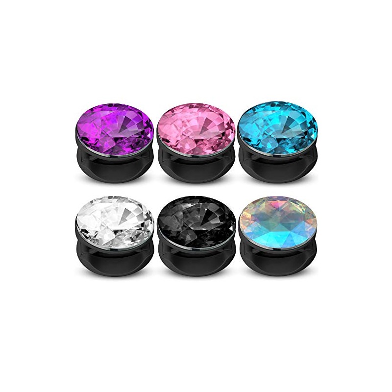 6 Pieces Plastic Disco Crystal Phone Grip Collapsible Crystal Phone Grip Holder Adhesive Foldable Expanding Finger Stand Holder Kickstand Grip for Smartphone and Tablets