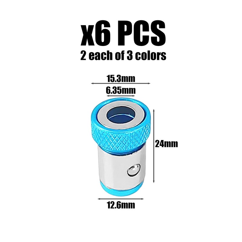 - Product contents: you will receive 6 screwdriver bit magnetic rings, the colours are red, yellow and blue. There are 2 pieces of each colour, the size is 15.3 x 24 x 12.6 mm, the inner diameter is 6.35 mm (suitable for 1/4 inch bits), suitable for magnetizing and bit fixing various screwdrivers and impact wrenches.