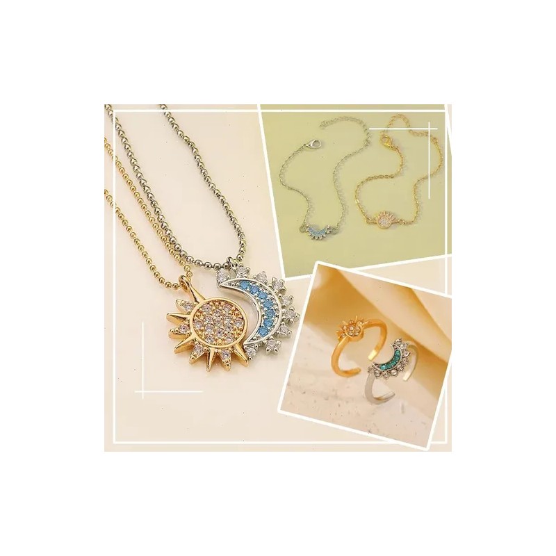 Conjunto de joyas Sol y Luna: El conjunto incluye dos collares Sol y Luna, una pulsera Sol y Luna y un anillo Sol y Luna a juego.