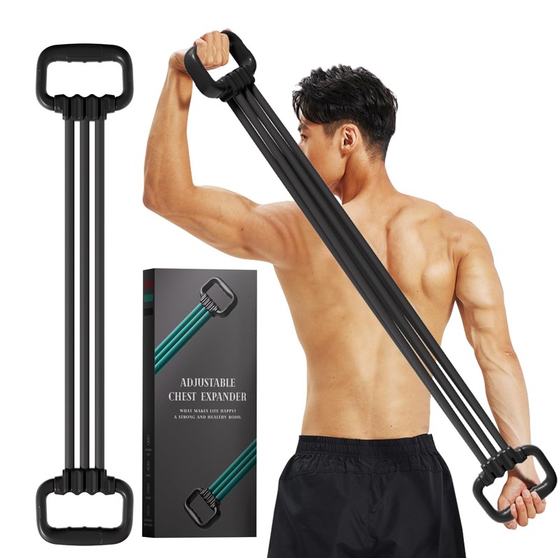 6-Pipe Chest Expander & Shoulder Stretcher - Adjustable Detachable Resistance Tubes for Home Gym, Rehab, Strength Training + Easy Workout Guide (Men/Women)