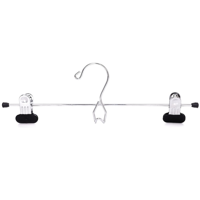 Quality Hangers's Add-On Skirt/Slack hangers come in a set of three with the ability to simply add more when needed. These convenient hangers come from Fit-Rite's Chrome Hanger Collection featuring a simple yet unique design that is substantial enough to keep your garments in place while protecting them from unwanted creases or snags. The durable chromed metal construction includes non-slip, snag-free black vinyl coated bars, clips and hook end protectors. The vinyl coated chrome hanging hook fits most standard closet rods.